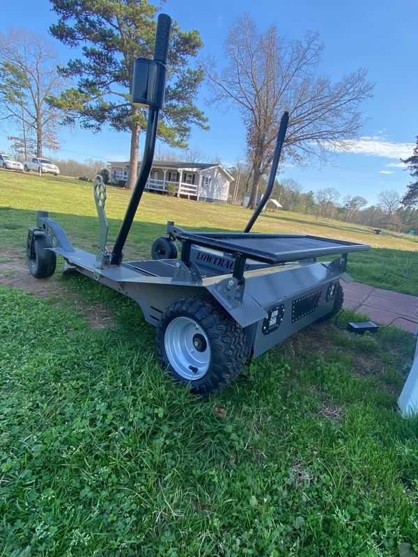 The LowTrack V1 has so far tested to be an invaluable asset for transporting a wheelchair user in most places where it's difficult and sometimes impossible for a manual wheelchair to travel. This model uses 250w electric motors with electromagnetic brakes for safety. It is also now equipped with a custom programmable controller and mobility chair style joystick for easier use. These are made to order and can be customized to the user. Everything from parallel bars for easier entry and exit to cup holders and gun racks are available to add. We have made adjustments to this model and offer only the tire package for it. Tracks and bigger tires are available for the V2 model with the bigger motors.